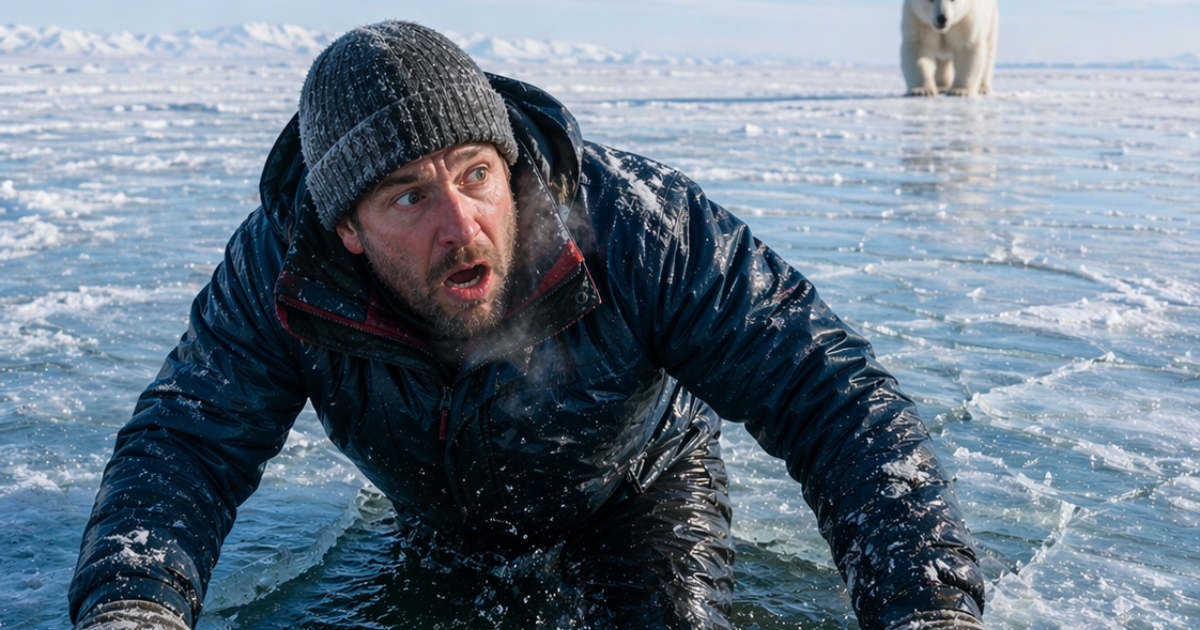 Ψαράς παγιδευμένος σε ραγισμένο πάγο αντιμετωπίζει μια πολική αρκούδα που πλησιάζει, σε μια μάχη για επιβίωση