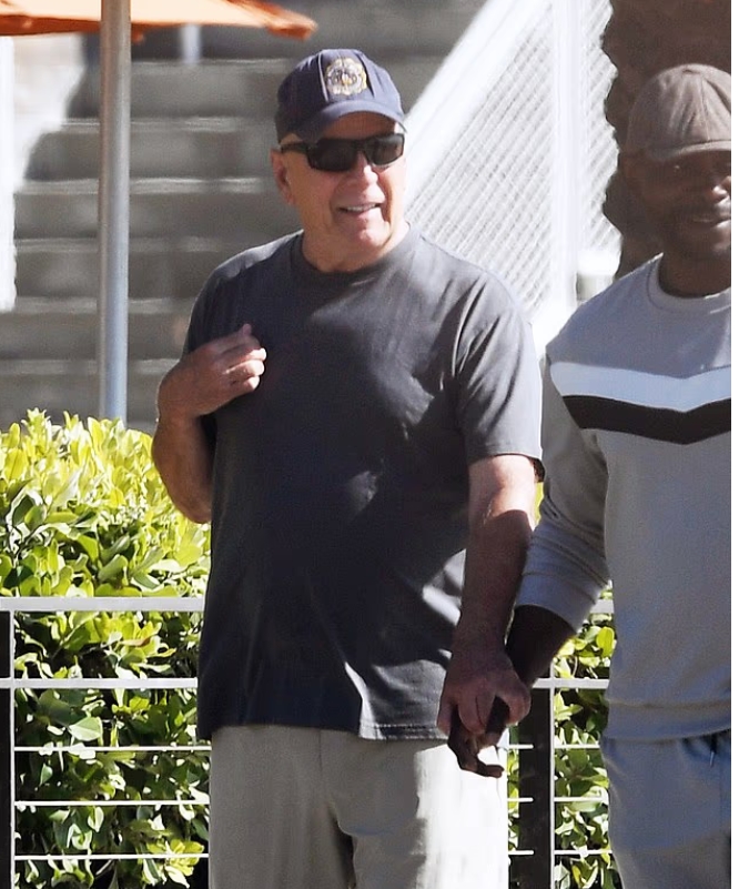 На 70 години, Брюс Уилис — някога непобедимото лице на екшън киното — бе заснет тази седмица, докато бавно се разхождаше по брега, ръката му нежно държана от асистента му. Снимките, едновременно топли и разбиващи сърцето, показват актьора с уязвима мекота, почти детска в любопитството си. За феновете това бе болезнено напомняне за бързото прогресиране на фронтотемпоралната му деменция, през което семейството му преминава с все по-голяма откритост и трудност.