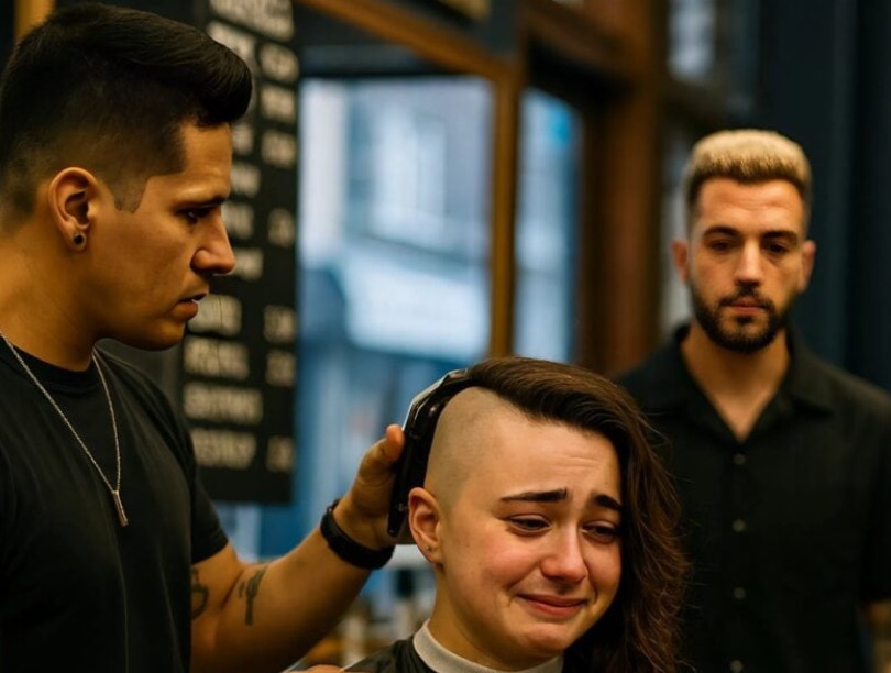 В бръснарницата настъпи тежка тишина. Гигантите, които винаги се шегуваха, внезапно замлъкнаха. Близкият ѝ приятел-бръснар тихо включи машинката. Първите кичури коса паднаха на пода, а сърцето на младото момиче се сви. Студеният въздух докосваше голата ѝ глава и сълзите потекоха неконтролируемо. Тя покри лицето си с ръце и хлипаше: „Боже, косата, която от години отглеждах, изчезва… толкова ме боли.“