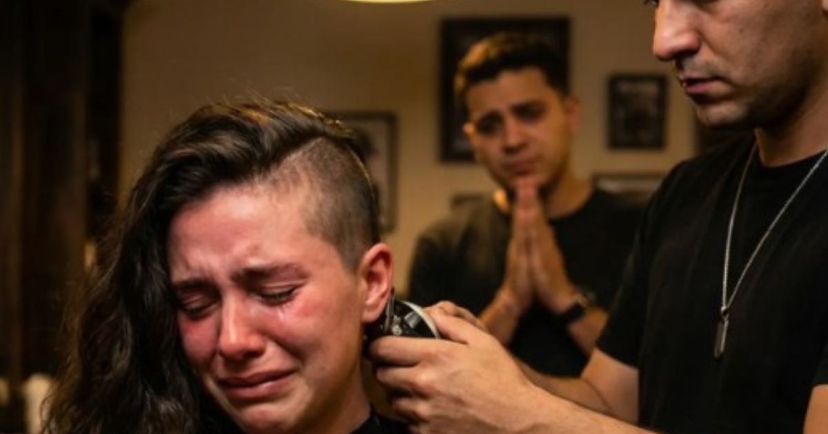 В бръснарницата настъпи тежка тишина. Гигантите, които винаги се шегуваха, внезапно замлъкнаха. Близкият ѝ приятел-бръснар тихо включи машинката. Първите кичури коса паднаха на пода, а сърцето на младото момиче се сви. Студеният въздух докосваше голата ѝ глава и сълзите потекоха неконтролируемо. Тя покри лицето си с ръце и хлипаше: „Боже, косата, която от години отглеждах, изчезва… толкова ме боли.“