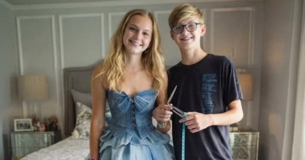 След като баща ни почина, моята мащеха Карла пое контрола върху наследството, което майка ни ни беше оставила, и егоистично твърдеше, че средствата трябвало да се използват за сметки, докато подигравателно се отнасяше към желанието ми да имам рокля за бала. Тя ме унижаваше, наричайки потенциалната рокля „скъпо принцеско облекло“ и казваше, че никой не искал да ме „вижда да се разхождам гордо“. Сърцето ми се сви от мъка и се оттеглих в стаята си, но 15-годишният ми брат Ноа реши да поеме нещата в свои ръце с тайния си план. Той извади старата шевна машина на покойната ни майка и купчина от нейните винтидж дънки и прекара нощите, като внимателно изработваше специална рокля, която сякаш бе тъканa от духа на майка ни.