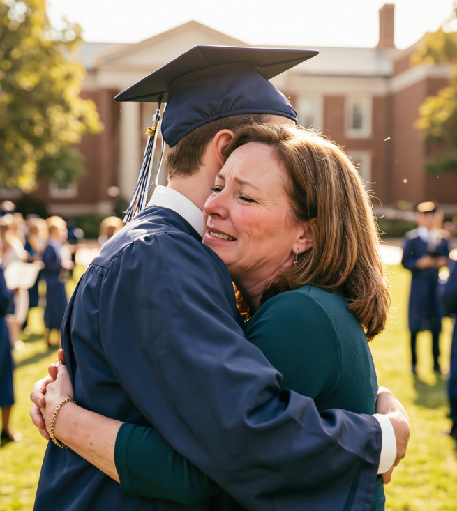 Джак така и не разбра напълно как успявах да покривам таксите му за университета. Винаги му казвах, че някак се справям, но истината беше друга: за да платя първата вноска, бях продала последния спомен от брака си – моята брачна халка. В деня, в който излязох от бижутерийния магазин без пръстен, аз не оставих там просто парче злато; аз отворих вратата към бъдещето на сина си. Когато настъпи денят на дипломирането и Джак се качи на подиума, призовавайки ме пред цялата зала да застана до него, почувствах, че тази тайна по някакъв начин ще излезе наяве.